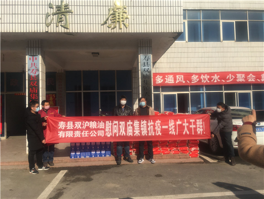 (壽縣雙滬糧油有限責任公司共計為雙廟集鎮(zhèn)政府、八個村委會、派出所和衛(wèi)生院捐贈價值2.6萬元的大米、牛奶)